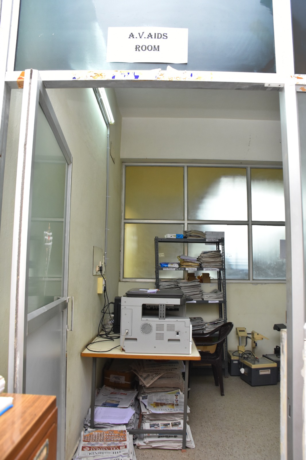 We have separate Audio Visual Aids room in which all the aids kept and maintained. We have all the modern audio-visual aids like-Overhead Projector, LCD, Television, TV, VCD/DVD player, Slide Projector, etc.
