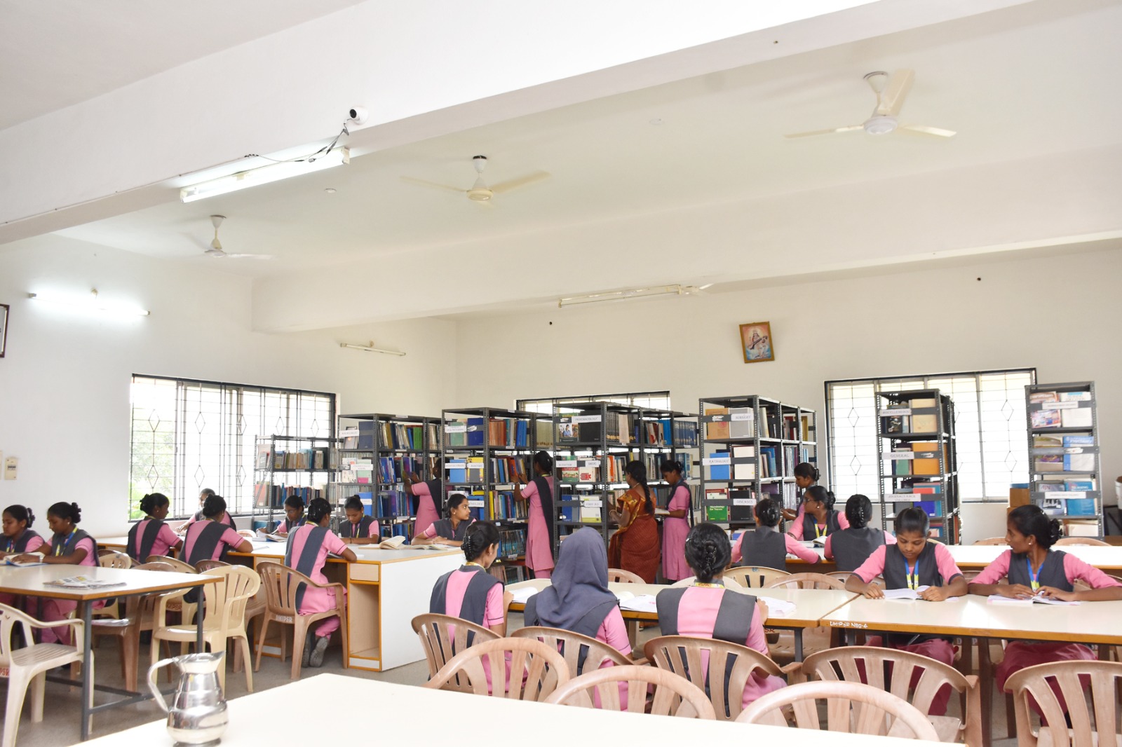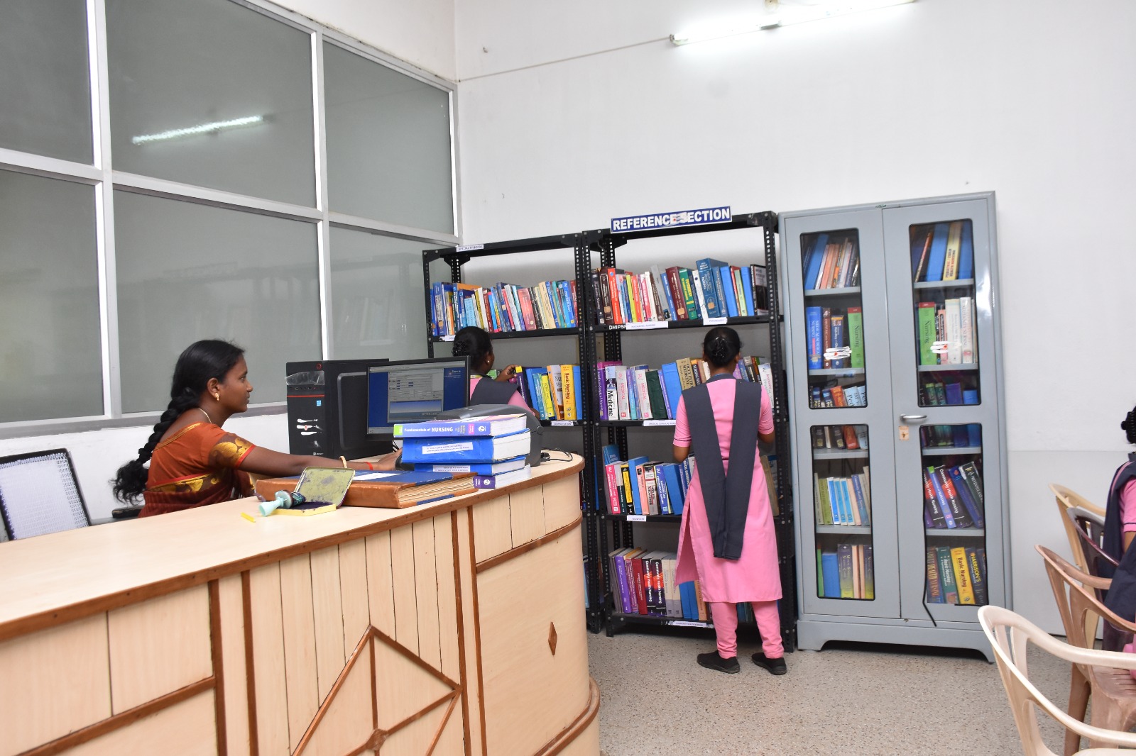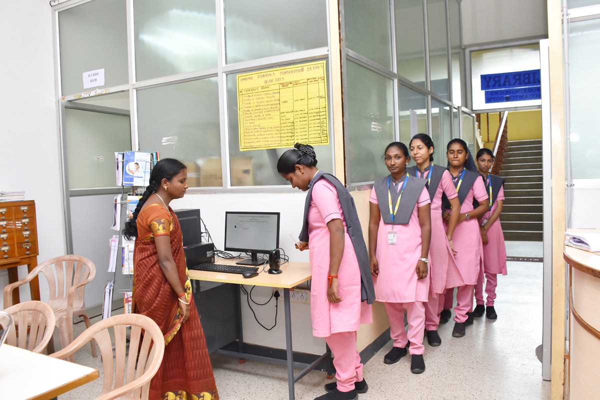 We have around 7000 medical, nursing, and general books, and also adequate furniture to enable 100 students to occupy at a time, and we have separate staff reading room. The Library is well ventilated and ism highly spacious. A separate journal section of national and international issues, along with new arrivals and reference books, the Library catalogue system also followed and maintained. For the purpose of students, xerox machine, computers with net facilites etc., are available.